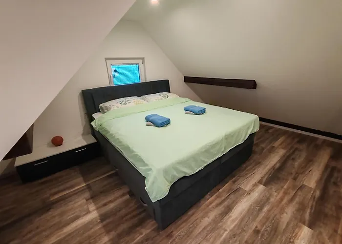 Dieses Apartment liegt in etwa 15 Autominuten Entfernung von der Burg von Bled. Die Insel Bled ist in circa 7 km Entfernung von diesen Unterkünften gelegen.